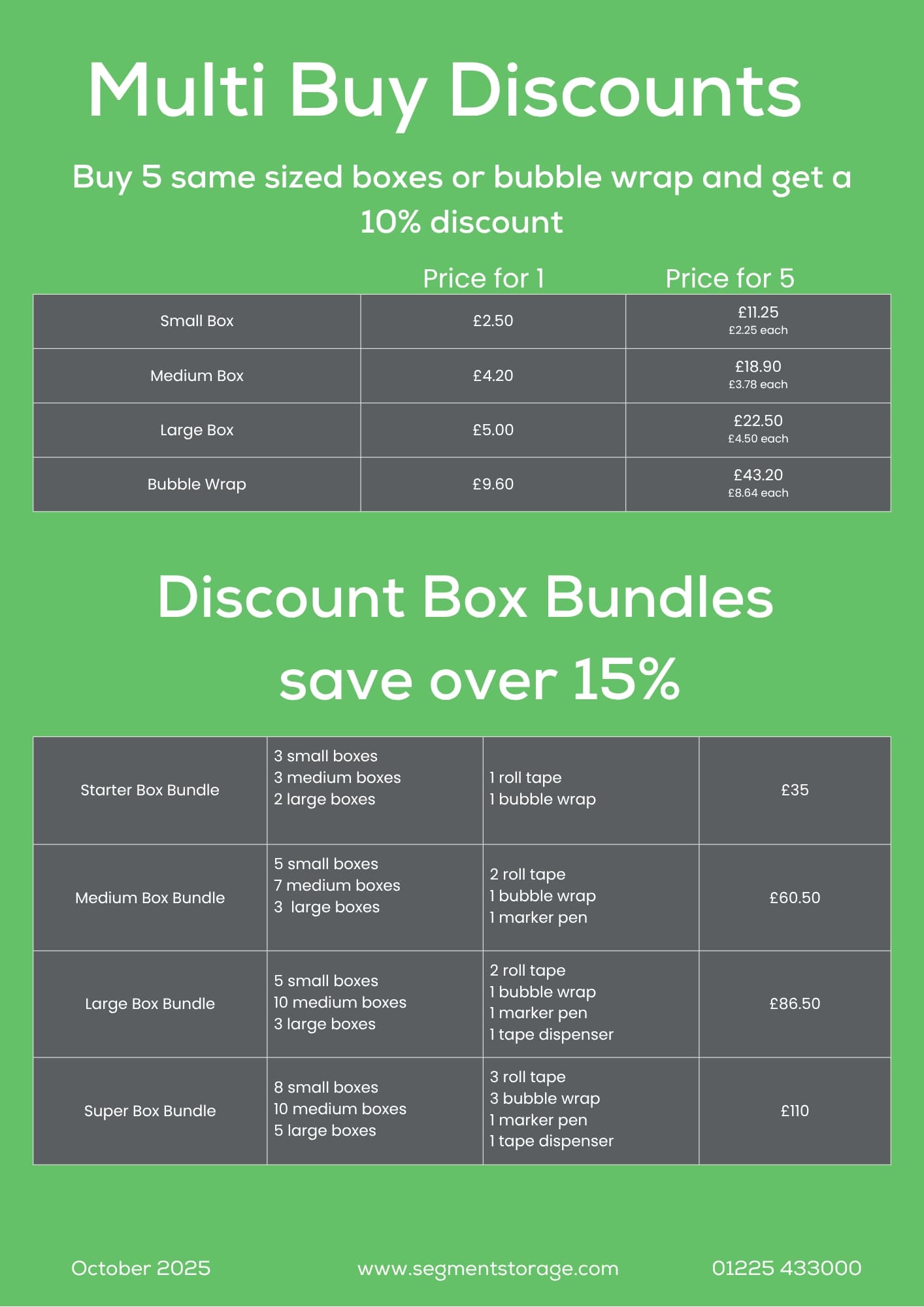 Or if you would prefer, please come and see us and you can select your boxes and packaging supplies and pay in store.